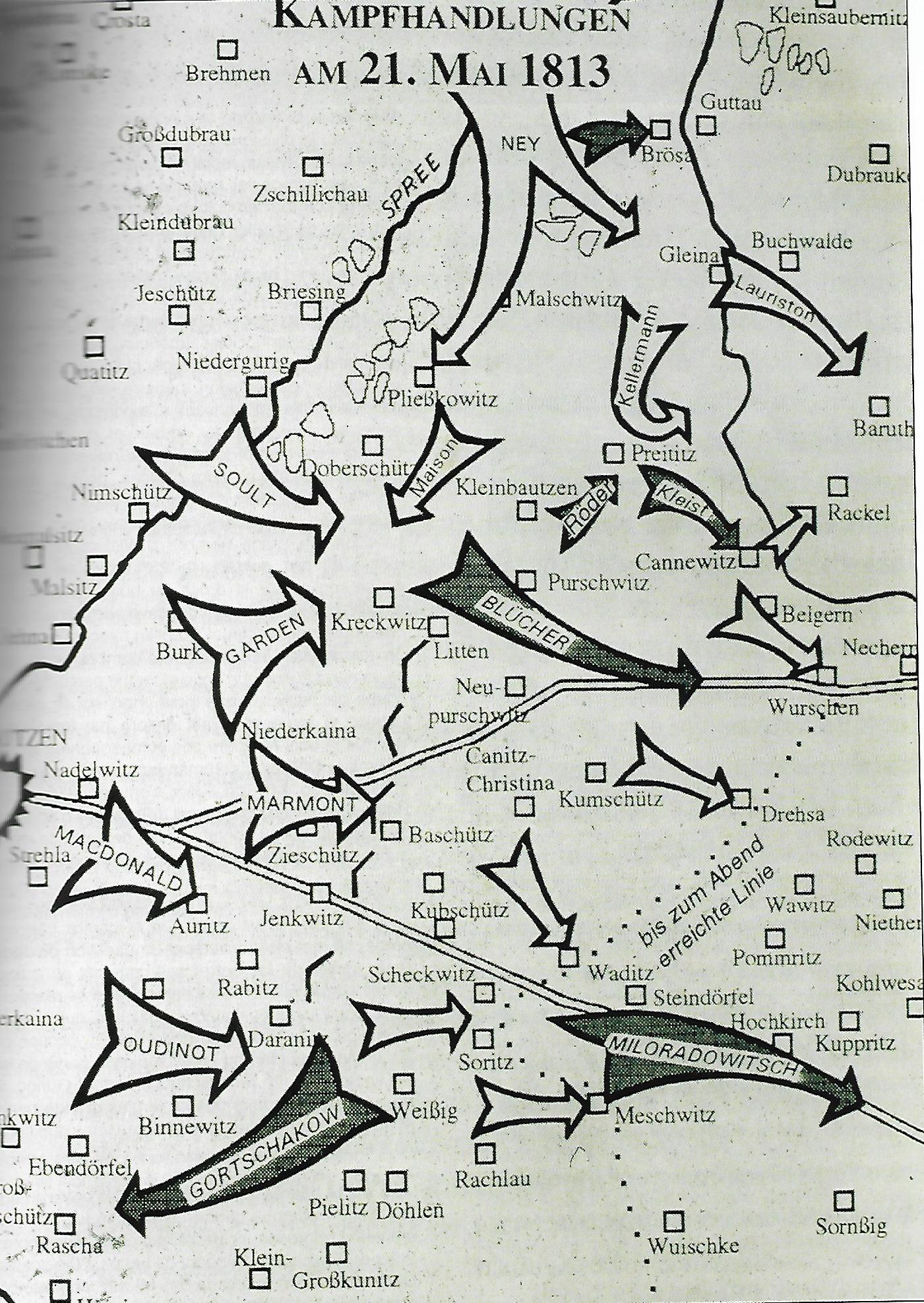 Le lendemain la proie Napoléonienne s’était envolée, l’absence de cavalerie fit que la bataille de Bautzen ou Wurschen ne fut que la répétition de celle de Lutzen.