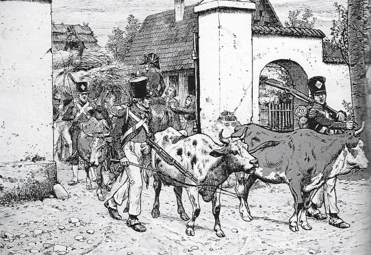 La présence d’un aussi grand nombre de troupes sur une si petite étendue provoquait un manque dans le ravitaillement. Les soldats partirent comme de coutume en maraude, Napoléon s’énerva un peu et ordonna des mesures de discipline à l’encontre des pillards. Mais comme on dit un sac vide ne tient pas debout, les soldats continuèrent sans trop se préoccuper du règlement.