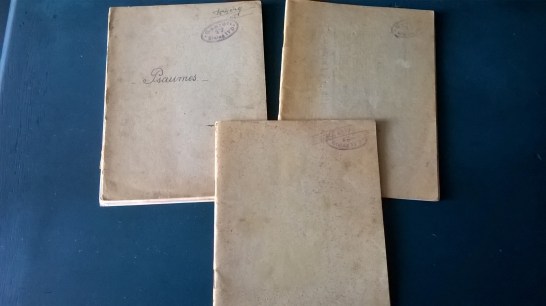 En vente sur des brocantes ou sur des sites en ligne, divers documents font surface. Toujours à la recherche d’une bonne histoire à conter j’ai acquis chez un de ses marchands 3 petits cahiers.