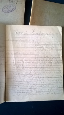 J’examine maintenant le contenu des cahiers et je m’aperçois que l’auteur est certainement un prêtre ou pour le moins quelqu’un qui veut le devenir. Les textes sont essentiellement une étude sur la religion catholique. Poursuivant ma lecture j’en déduis également que mon militaire est organiste ( il joue de l’orgue ).