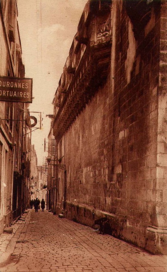 rue de la grille avant son agrandissement, à droite l’hôtel de ville de la Rochelle.