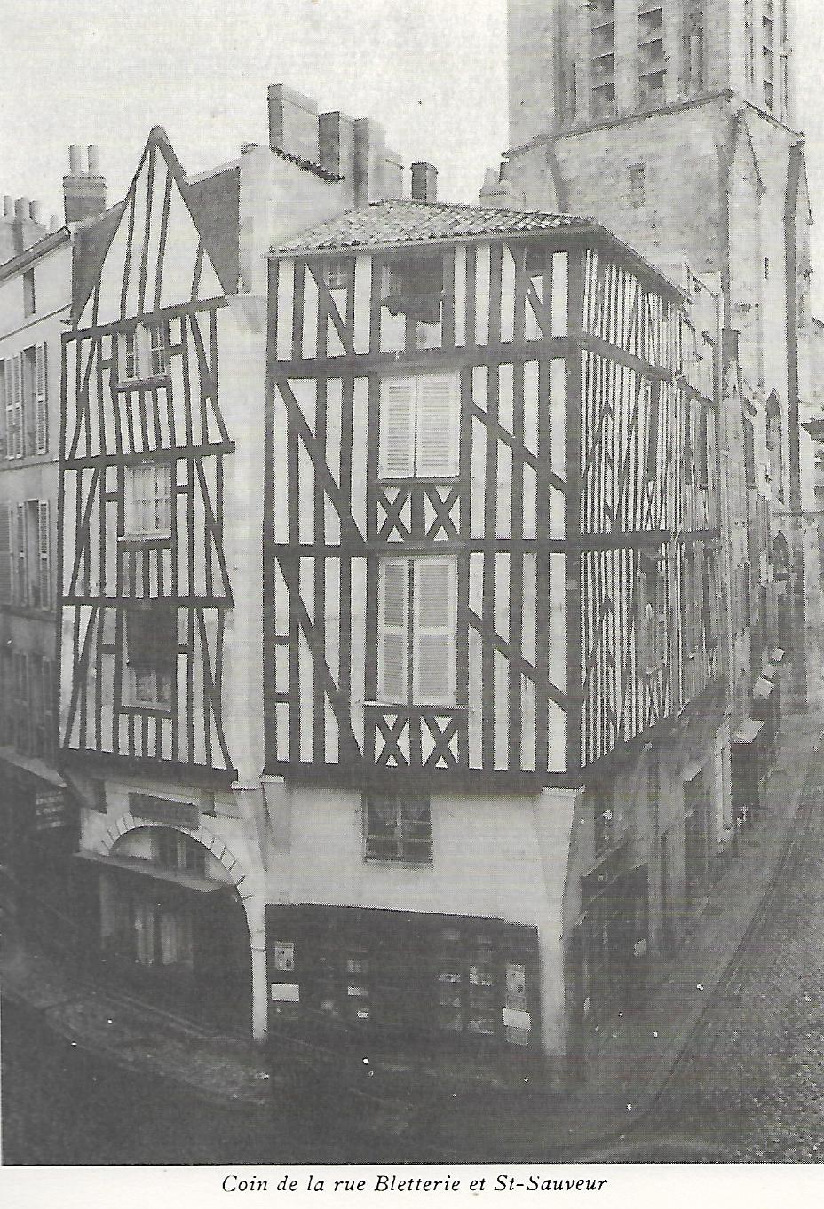 Je travaillais donc dans ce quartier très vivant et coloré, certes comme je l’ai déjà dit les appartements n’étaient guère confortables et l’on changea encore de rue pour nous loger. Nous déménageâmes rue Bletterie, dans une vieille maison à pans de bois, la aussi escalier raide comme la justice, parquet vermoulu et poutres multicentenaires, noires de suie de poussière et de crasse.