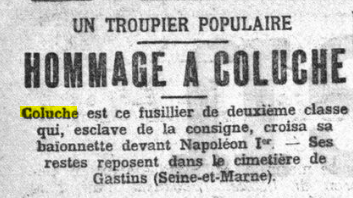 Maintenant je crois que je vous ai fait assez languir, notre célébrité locale se nommait Jean Alexandre Coluche, les passionnés d’histoire connaissent sa saga les autres peut être pas.