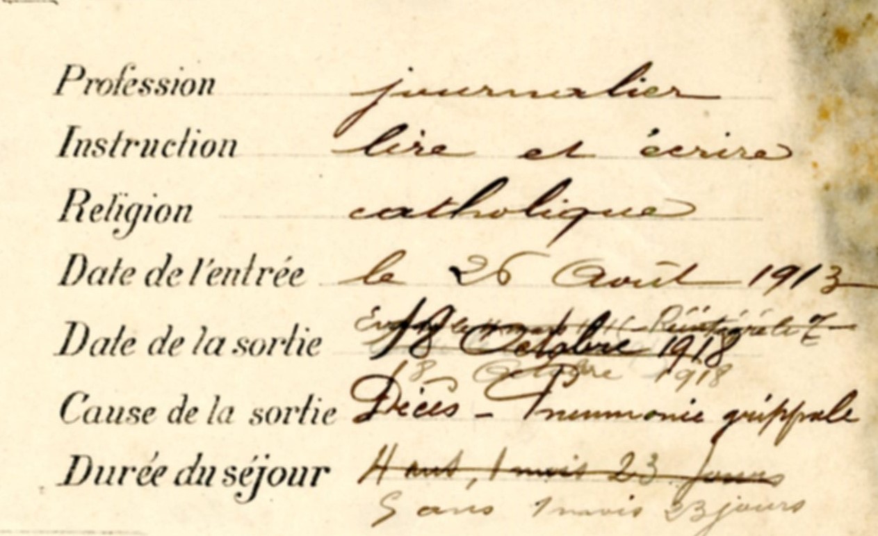 Nous étions le 25 aout 1913, l’hôpital était celui des fous, mais comme je ne l’étais pas je n’allais pas y rester longtemps.