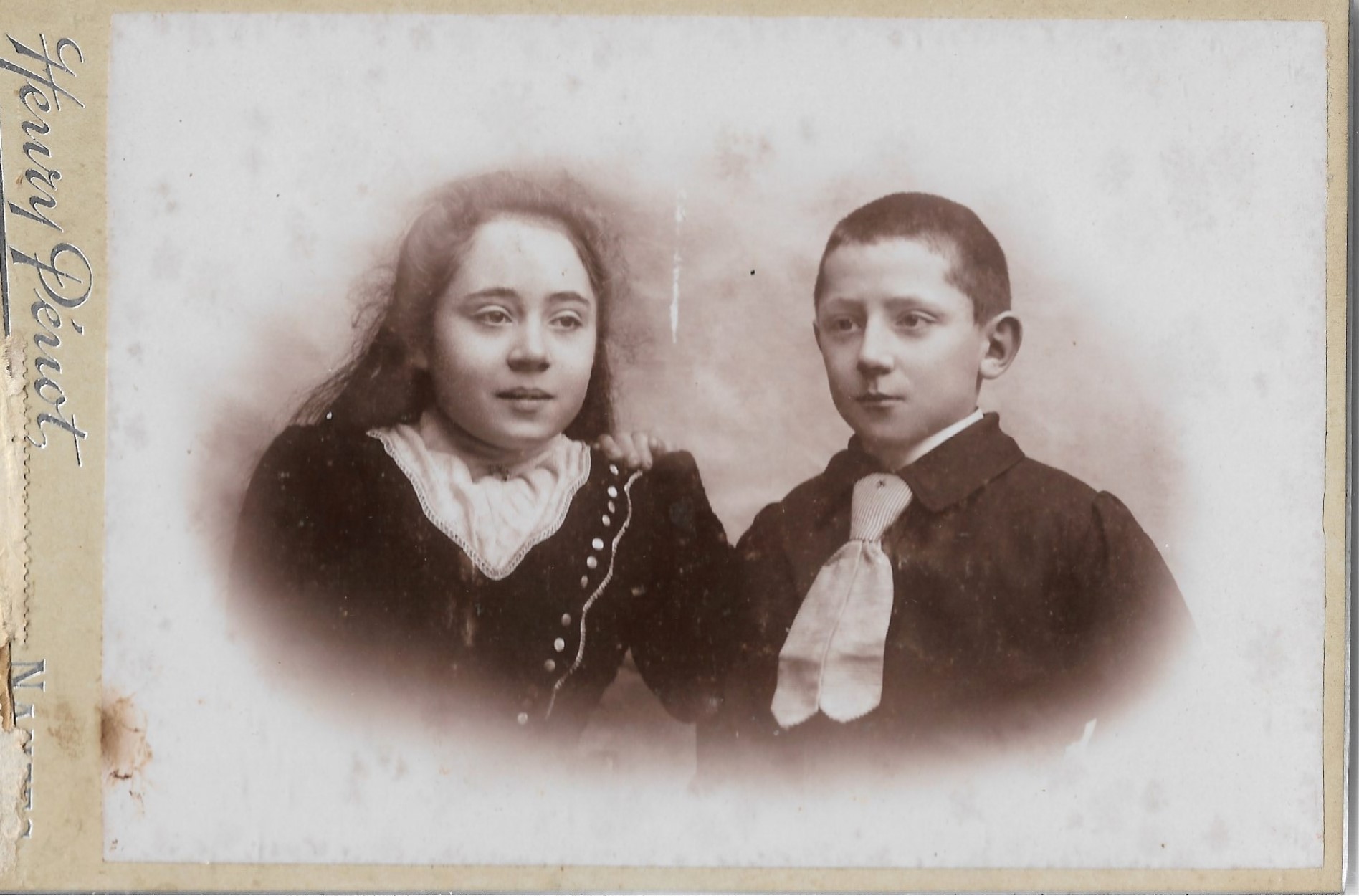 Un portrait d’enfants  avec une probabilité pour qu’ils soient frère et sœur, fait chez Henry Penot , place du change à Nantes .