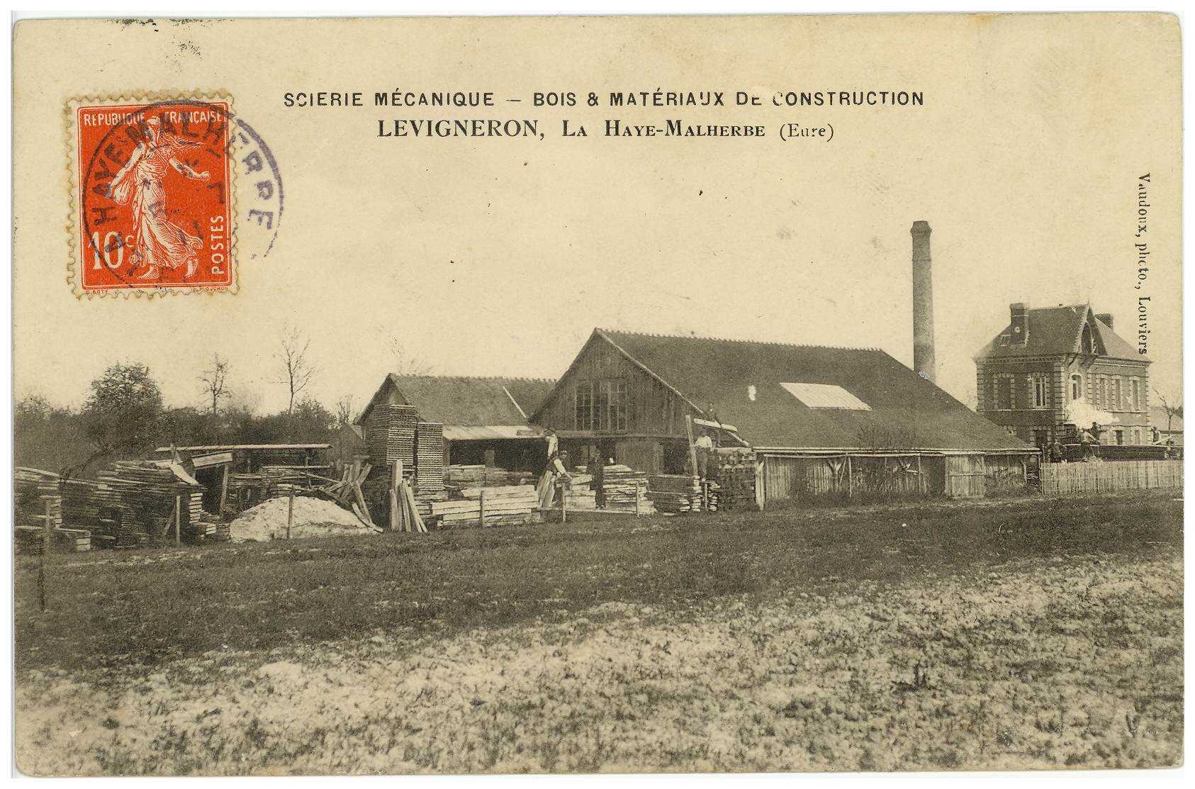 Alors un jour on m’emmena chez mon grand-père à Surtauville, on m’expliqua que j’allais apprendre le métier de scieur de bois. C’était le papa de maman, il tenait une scierie dans le village et une autre à la Haye Malherbe. J’étais un peu heureux, m’en aller de la boucherie, des jeunes qui m’ennuyaient, des filles qui me chassaient et de maman qui ne m’aimait guère.