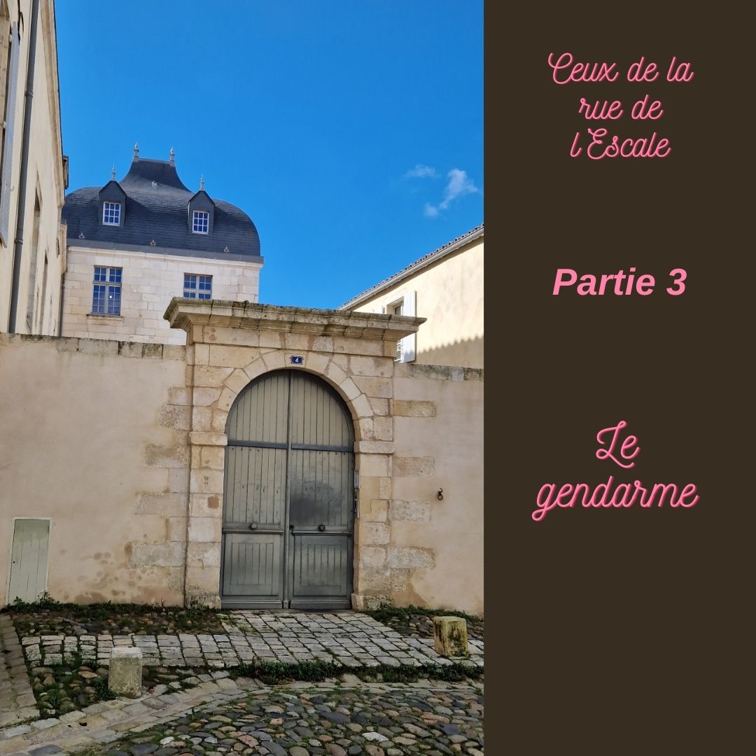 En bas de la maison Zoé croise monsieur Babin, il habite au dessus de chez elle. Lui comme chaque jour, part pour sa promenade, sanglé dans son pardessus comme au temps de sa lieutenance de gendarmerie. Respectueusement il lui adresse ses salutations du matin et s’en va appuyé sur sa canne. Ils ont le même age, lui est né à Saint Jean d’Angély et est devenu officier de gendarmerie. Il est fier d’être chevalier de Saint Louis et devient intarissable sur sa carrière, si vous faites l’erreur de lui demander d’en conter l’histoire.